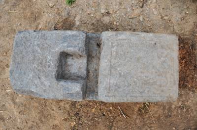 来到村上找到67岁的郑杰进老人,向他打听地门洞过去是否有人居住或有和尚和道士在此修行?老人介绍说前朝也不知是哪个朝代,有一个叫王安春的人在此修行,他能知什么时间种什么庄稼能丰收,还能预知丰收年和灾年.洞口是大门,不知什么原因王安春消失了.上世纪解放初期土改时村民在洞口挖出了些石门墩和石条,以及青花碗盘,证明老人们说的是真事而不是传说.如今石条还在40岁村民刘小华家,我们来到刘小华家用相机拍下了雕花的两块青石和两块浅红色门下石条.郑杰进老人说天门洞洞口和地门洞小洞口是龙的双眼,地门洞大洞口和洞口尖三角石是龙嘴和舌头,五条腿山的山脊是龙身,山后的白石村洞口是龙尾.