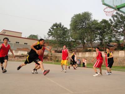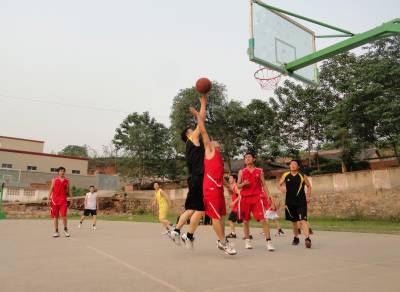 19日下午课外活动时间,郧县刘洞镇九年一贯制学校篮球场上老师们龙腾虎跃,热闹和欢乐溢满球场。该校积极倡导“健康生活,快乐工作”的理念,球场更是成为师生们的健身乐园。(高超 摄)