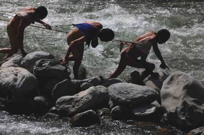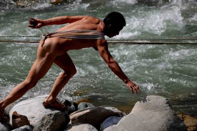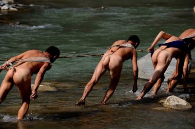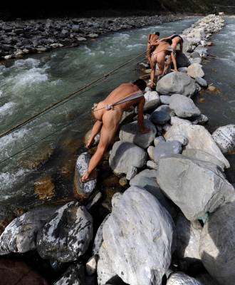 上世纪80年代后期,巴东神农溪开始从事旅游开发工作,纤夫拉纤成为景点最大的卖点。2010年初,这里因为恢复“裸体纤夫”饱受争议。神农溪奇美险峻,有险滩、长滩、弯滩、浅滩60余处,船工撑船是神农溪景观之“最”。近年,巴东神农溪纤夫文化通过传承与延伸,使不少旅游者心向往之。(杨发维摄于2010年)