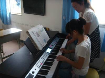 地处鄂西北山区的郧县茶店镇初级中学校园内,近日被一阵阵悦耳动听的钢琴声所吸引。这是该校被称为“歌星”的八年级学生陈泽郧在教师吴艳丽的指导下练琴的一幕。