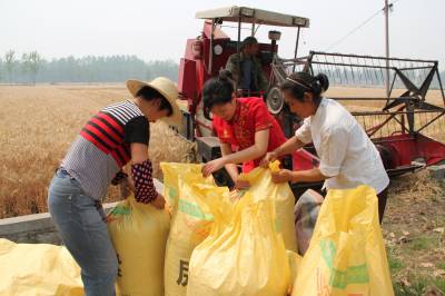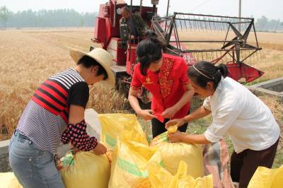 谷城夏粮抢收农机唱“主角” 5月19日,冷集镇上集村农民正将收割机刚收割的小麦装包往家搬运。近年来,谷城县农信社支农力度一年超过一年,特别是在加快机械化产业进程上,该社投入的贷款很好的满足了农民的生产需求。仅收割机一项,全县就多达300多台套。农机在播种、收割等方面唱起了“主角”。农民的生活更加舒坦、幸福。 本报视界网马明刚摄