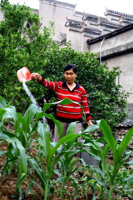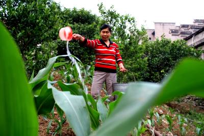 5月20日,秭归县屈原镇龙马溪村二组村民关琼正在自家地里为之前趁雨抢种的红薯苗及玉米苗浇水抗旱。 据宜昌市防汛抗旱指挥部办公室5月19日晚发布的旱情通报,该市旱情异常严重,有13个县市区78个乡镇受灾,降雨量之少、干旱持续时间之长为历史少见,农业生产和人畜饮水受到严重影响,抗旱形势十分严峻,为此该市各级各部门组织动员群众多措施抗旱保播种。 视界网 王爱平 摄