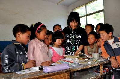 学校负责人告诉笔者:“这两位新老师是羿天明先生的女儿,姐姐叫霞霞,妹妹叫沙沙,姐姐毕业于加拿大特伦特大学环境化学专业,妹妹就读于加拿大多伦多大学商科。5月15日,羿天明先生专程送她们来到我校,以志愿者的身份来资教两个月。”