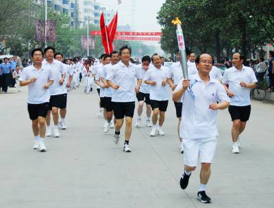 5月21日,黄冈市第三届运动会主会场---武穴市体育中心彩旗飘扬,歌声嘹亮,黄冈市三运会火炬接力传递到达武穴,武穴市市委市政府在这里举行火炬接力传递仪式,由全国劳动模范、湖北祥云化工有限公司董事长、总经理、祥云集团党委书记胡华文担任主火炬手,黄冈市道德模范代表、企业成功人士代表、工人代表、武术世界冠军代表担任火炬手,武穴市四大家领导和群众担任助跑的火炬接力传递方阵沿武穴城区最繁华的路段进行接力传递,引来了许多体育爱好者参加接力长跑,许多企业派出员工进行助威,许多摄影爱好者拍摄这一精彩瞬间!冯怡红摄影报道