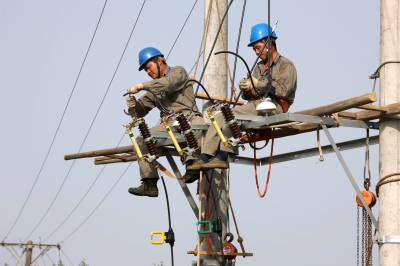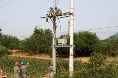 5月20日,湖北通山县大畈供电营业所员工顶着37℃高温为通羊镇渠潭村架设抗旱抽水泵站专用配电变压器。进入抗旱关键期以来,湖北咸宁供电公司70余个抗旱服务队为全市6个县市区受旱灾区架设10千伏配电线路22千米、临时低压配电线路96千米,新建和改造抗旱配电台区79个。目前,已灌溉农田4.7万亩,解决6000余人、2000余头大牲畜的饮水困难。