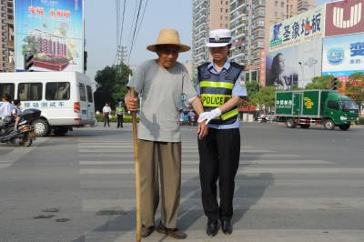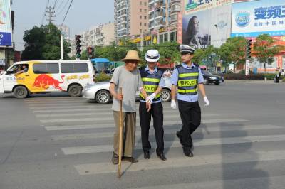 5月22日,黄冈市公安局交通警察支队民警搀扶老人过马路。为全力保障老人、儿童、残疾人交通安全、展示革命老区黄冈公安交通管理良好形象“护卫行动” ,黄冈市公安局交通警察支队针对黄冈城区各机动车、自行车流量大的特点,连续两年主动承担护送老人过马路,支队机关民警轮站高峰岗、当班民警和协警均按时到岗,维护道路交通秩序,加强交通指挥疏导,引导老人、儿童、残疾人安全过马路,让老人、儿童们和家属们在人性化服务中倍感安心和温暖。(本报视界网 周林利 阮景红 摄)
