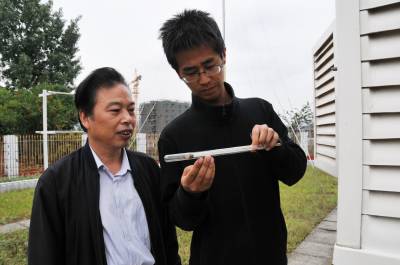 截止5月22日下午,十堰市80多个作业点经过第二次大规模增雨作业形成的小到中雨经过24小时降雨使全市50年一遇旱情有所缓解,全市降雨量依次是竹溪县49.9毫米,竹山县41.7毫米,丹江口市33.2毫米,十堰市28.7毫米,郧县25.2毫米,房县28.2毫米,郧西县16.1毫米。 图为22日下午郧县气象台台长宋立学(左)正与当日值班员任建刚(右)观察雨后湿度,温度和自动气象记录时的情景。 周家山摄 郧县城管大队 电话13872840078 邮编442500