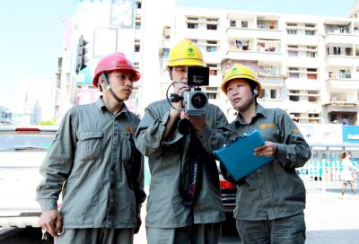 让学生有一个良好的考试环境 从5月23日到六月六日前,宜昌供电公司配电中心对城区内的70多台箱变进行检查和温度检测,对存在的问题进行整改,保证宜昌市区内各学校的高、中考试顺利进行。 工作人员对市区夷陵路一环网柜进行检查和温度检测。