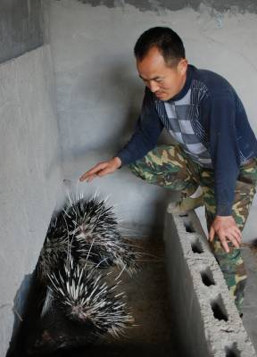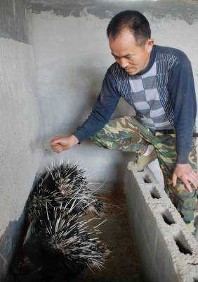 5月23日,宣恩县珠山镇甘溪村村民王勇正在察看豪猪生长情况。 王勇先后投资20余万元修建了豪猪养殖场,并以每组(每组4头)1.18万元的价格购进4组豪猪行发展豪猪养殖。目前该县已有50多人养殖豪猪1600余头,可增加收入60余万元。 据悉,豪猪又称箭猪,是一种经济价值很高的珍稀动物,由于肉质细腻,味道鲜美,深受人们的喜爱,同时还具有很高的药用价值,被称为绿色肉食,绿色药物。 本报视界网 李以国 摄