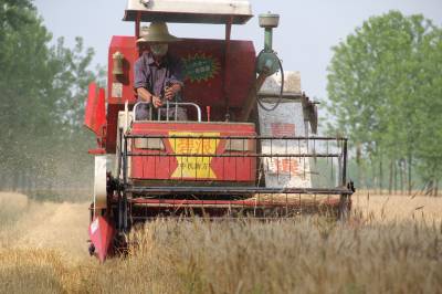 谷城夏收“铁牛”唱“主角” 5月23日,冷集镇朝阳湖村机手在帮乡邻邦收割的小麦。近年来,谷城县农信社加大支农力度,特别是在加快机械化产业进程上,该社投入的贷款全面满足了农民生产需求。仅收割机一项,全县就多达300多台套。“铁牛”在播种、收割等方面唱起了“主角”。 本报视界网马明刚摄