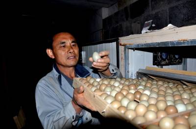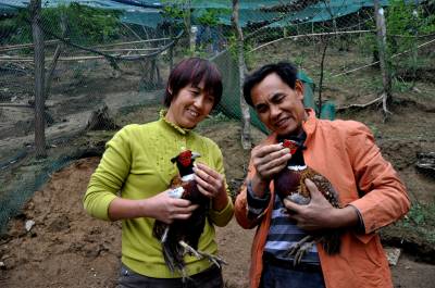据悉,2009年7月,该乡在外面 “闯世界”8年的打工仔梅建成夫妇,回到村后,考察了野鸡养殖有很大发展空间,就利用打工积攒的1万多元钱在老家责任山上“栏”鸡舍,购进108只野鸡崽饲养种鸡,开始发展起野鸡养殖业。目前,他孵化箱里的第二批2000多只野鸡蛋(图2),不到7天就要出野鸡崽了;第一批1200多只脱温全程预防野鸡崽正在“训练”(图3)。他的发展目标是集原生态、循环经济、科技养殖为一体的反季节饲养。至今带动文德学、马东平等6户养殖户,养殖2万余只,预计今年年底创收120万元,实现共同致富目标。