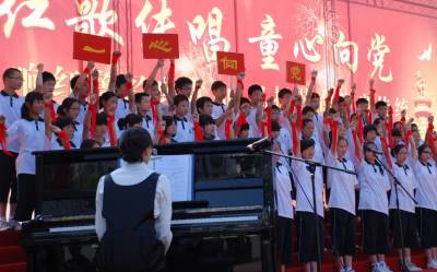 “没有共产党就没有新中国……”,25日,武当山中学举行庆祝建党90周年“红歌传唱 童心向党”红歌合唱比赛,1000多名中学生在激昂的旋律中传唱《歌唱祖国》、《今天是你生日,中国》等一首首红色经典歌曲,抒发爱国、爱党情怀。