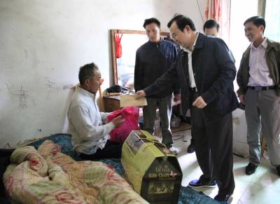 熊副局长在当地镇领导、“三万”活动队员和村干部的陪同下,随后到五保户龚大林,特困户段奇勇、沈桂清和余为保家中走访,察看他们的生活环境,与他们亲切交谈,询问身体和生活情况,给他们发放慰问品和慰问金。