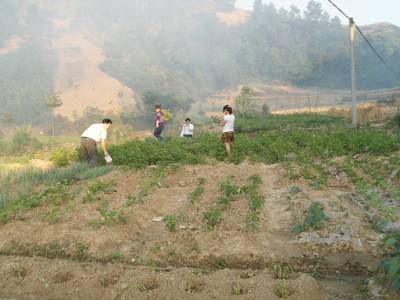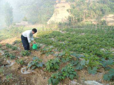 25日下午,郧县五峰乡界牌完全小学教师在蔬菜基地浇水。鉴于目前郧县旱情趋重发展的严峻态势,该校积极组织教师利用课余时间提水浇菜抗旱保苗,确保住宿学生吃到新鲜的蔬菜。