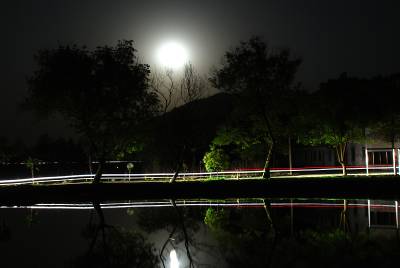 傍晚,路过农家池塘,一轮明月挂在树梢。吸引我按下快门。
