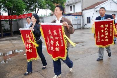 5月31日上午,一场绵绵细雨为久旱的王店镇带来了喜悦,一面面鲜红的锦旗承载着村民对“三万”活动的浓浓深情,省教育厅工作组驻地欢声笑语,鞭炮齐鸣,气氛热烈。白鹤、高岗、齐岗、老营四个村的村支书代表884户百姓为省教育厅工作组送来了四面锦旗,表达感谢之情。