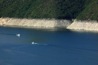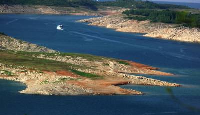 近日获悉,湖北丹江口库区水位持续下降,大面积滩涂外露,严重影响丹江口至河南淅川段的航运。在丹江口市凉水镇,多年被淹没的石林显露出来。