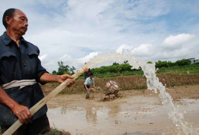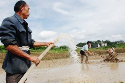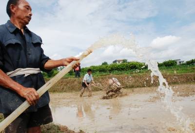 5月31日,宣恩县李家河乡金陵寨村农民在当地干部的组织下正用水泵抽水翻耕稻田。受当前干旱天气影响,宣恩县旱情严重,大量农田受旱,农民难以如期翻耕田地,插种秧苗。该县实行县、乡、村“三级联动”,组织干部群众想方设法寻找水源,积极投入抽水机械设备帮助农民抗旱保耕种,减少旱灾带来的损失。 本报视界网 李以国 陈开银 摄