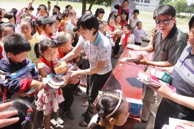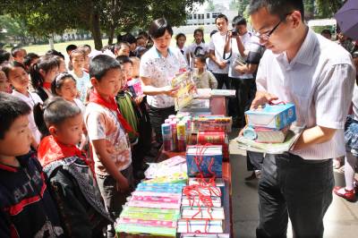 随州团市委向农民工子女献“六一爱心礼物” 6月1日,随州团市委向城区铁树学校、南郊瓜园学校等学校将价值4000多元的文化用品、学习书籍送到农民工子女、贫困学生、单亲家庭孩子手中。献上节日爱心礼物。本报视界网杨文明摄