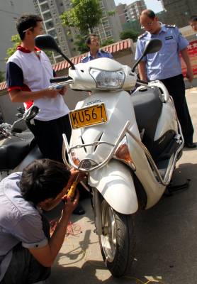 6月1日上午,120余名摩托车主推着自己的车子来到纸坊派出所在登记审核后,由警方给每辆车补贴220元钱,然后在现场给自己的摩托车安装了GPS车载定位模块。