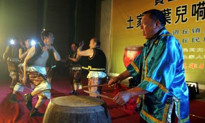 4月中旬,长阳县资丘镇举行了首届“撒叶儿荷”鼓师大赛决赛,来自全镇十九个村24只参赛队的42名选手参加了角逐。土家族“撒叶儿嗬”是清江中游地区土家族人死后一种祭典歌舞,在民间亦称跳丧或打丧鼓,与土家人的生活息息相关,并世代相传,其形式完整,个性鲜明,具有传统审美特征和鲜明的文化属性,2006年,被国务院列为首批非物质文化遗产保护名录。“撒叶儿嗬”在资丘有着广泛的群众基础,可以说是村村都有鼓,人人都会跳。