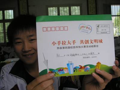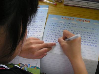 日前,郧县在创建文明城市工作迎检之际,该县文明办、教育局、邮政局联合举办以“小手拉大手 共创文明城”为主题,突出“文明、卫生、环保”三大写作内容在全县中小学校及中职学校学生中以书信比赛的形式展开交通法规和环保知识等读书学习活动。旨在以中小学生倡导全体公民共同参与创建,达到提高市民素质,提升城市形象,彰显城市魅力的效果。图为茶店中学学生在创作书信的情景。本报视界网:曹相聪 摄