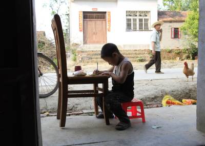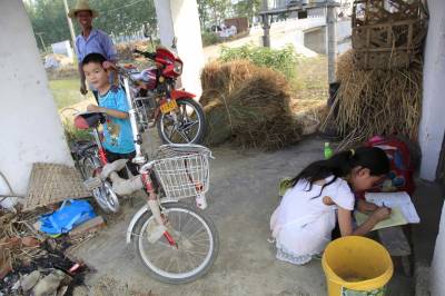 在湖北省仙桃市杨林尾镇农村,年轻人大多数都出去打工了,照看孩子和种地任务都落到老人双肩上,只有到了春节,孩子才能与父母相聚。农忙季节,大人在田间种地,孩子只好跟到田头,一人玩耍。当问孩子想不想爸爸妈妈时,孩子总是怯生生的地不愿回答,给人感觉爸爸妈妈与他们既陌生又遥远,留守孩子的心理健康成长应该引起关注。