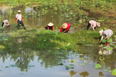 > 干旱致藕塘野草疯长
