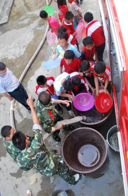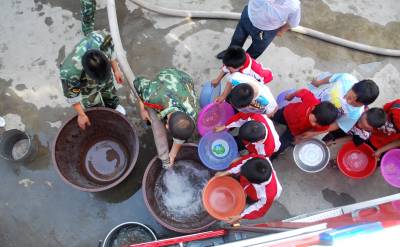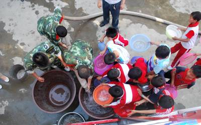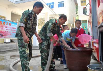 三峡库区兴山县是湖北省特旱县市,受干旱影响,该县黄粮镇中心小学、中心幼儿园等学校的3000余名学生和周边村民饮水困难。兴山县消防官兵组成抗旱突击队,驱车两个多小时,为山区学生和村民送去了30余吨生活用水。