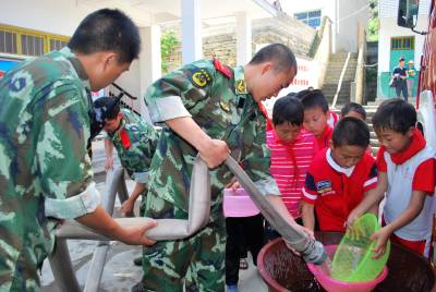 > 消防官兵为千名山区学生送去“生命水”
