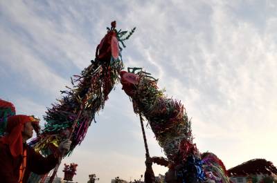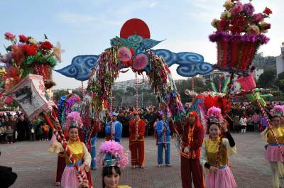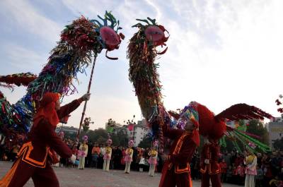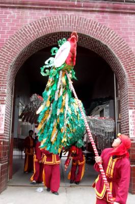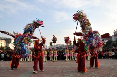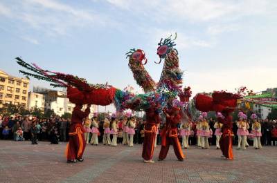 郧阳凤凰灯舞”,又称"玩凤凰"、"凤凰舞",起源于鄂西北郧阳。由二人表演,一人掌凤头,另一人掌凤身。有花盆灯、太阳灯,还有自制“乔火”粉末烘托气氛。其表演程序有“凤鸣、出巢、游园、寻花、戏牡丹、鹐翅、理羽、鹐脖子、擦痒、打盹、扑翅、朝阳”。古朴典雅,舞姿优美,翩翩起舞,栩栩如生,出神入化,热烈豪放,并配以独特风格的凤凰灯曲调,激越欢快,富有浓厚的鄂西北民间特色地方特色。郧阳凤凰灯是楚文化的重要组成部分,是楚人崇凤的活化石,是我省第一批申报国家级非物质文化遗产项目,被中外专家学者誉称为“全国独一无二、举世无双” 。(程馥华 摄)