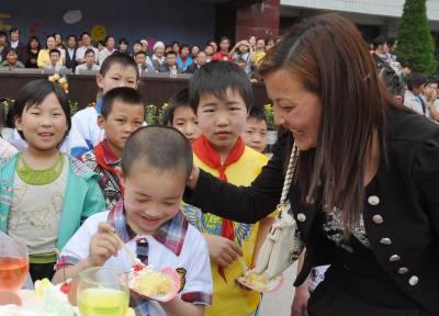 6月1日,建始县官店镇的“爱心妈妈”给镇民族小学的“留 守儿童”送来了节日蛋糕。当日,20多位“留守儿童”和他们的“妈妈”一起共度节日。作为“爱心妈妈”志愿者行动的一部分,节日慰问在该校已得到长期坚持。