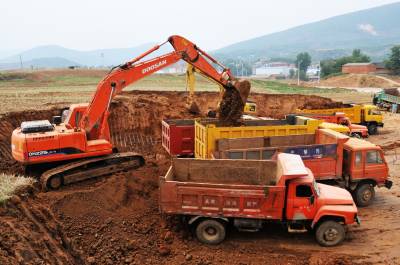 6月2日,十堰市郧县谭山镇国际石艺城建设工地正在平整场地,谭山国际石艺城自动工兴建以来己完成3.5亿元的一期规划256500平方米的建设任务,谭山国际石艺城占地面积1100亩,内设3个精品加工区,2个板材加工区,一个培训管理中心,一个展览中心,一个交易中心,目前已有30多家企业入住谭山国际石艺城,现二期工程开工建设,石艺城全部建成后将有300多家企业入住并加工谭山镇特有的米黄玉大理石系列产品。