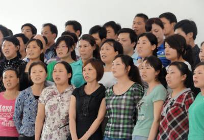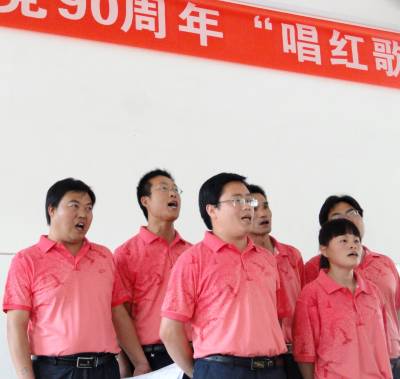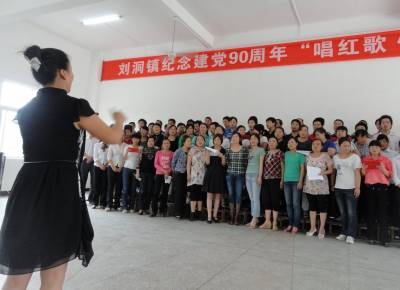 为迎接建党90周年, 6月1日下午,郧县刘洞镇教育工会组织教职工举行了“红歌献给党”大赛,教师们用歌声讴歌对党的忠诚和热爱。 ( 高超 摄)