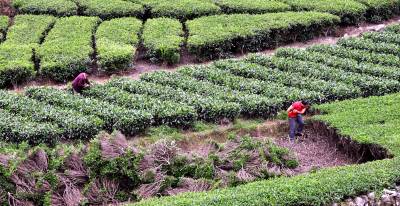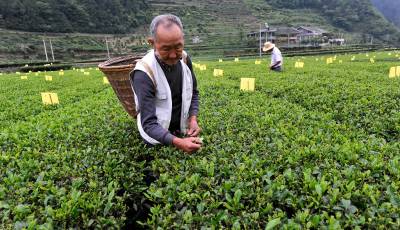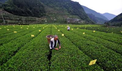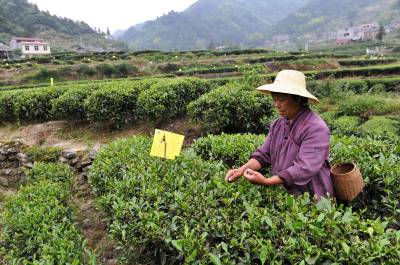 6月2日,宣恩县椒园镇老寨溪村茶农在采收夏茶。该县茶叶种植面积达10万亩,因茶树是深根作物,“抗旱”能力较其它作物要强得多,这种特性在今年的特大旱灾面前,为保茶农收入“立功”。据当地农业部门介绍,到目前为止全县茶叶创造的产值略高于去年同期水平,茶农因旱灾造成的损失较小。本报视界网 宋文 摄