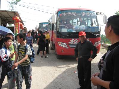 6月3日十堰市郧县杨溪中学学生在教师护送下出校门、有序乘车回家。杨溪铺镇是一个毗邻县城、区域较广的农村乡镇,该镇杨溪中学是一所农村寄宿制学校,位于209国道旁,大门口处有一个十字路口,极易发生交通事故。该校采取教师护送上车、学生“一对一帮扶”措施,强化学生上下学途中安全工作。每周末班主任与值日教师把学生送出校门按序上车后,让七、八、九年级学生负责帮助小学五、六年级学生的上、下学途中的交通、人身、财产等安全。(杨溪中学 李会清 442514)