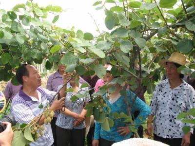 “电脑通”指导村民疏果 6月1日,建始县三里乡石牌村“电脑通”周立贤,给猕猴桃专业社员传授疏果技术。石牌村的92户村民种植优质猕猴桃208亩,在电脑通周立贤的网上技术帮助下,户平增加经济收入11800元。 本报视界网 杨大忠 刘少坤 摄
