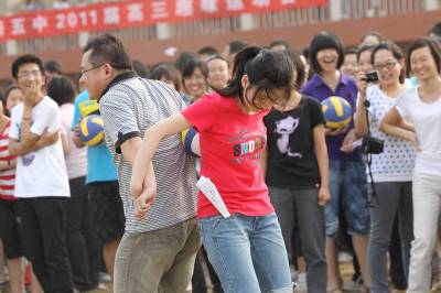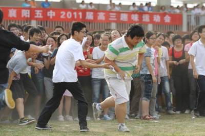 6月2日,襄阳五中举办高三年级趣味运动会,2000多名应届毕业生以班级为单位,参加“迎风飞翔”接力、“同心协力”夹球跑接力、“放飞理想”纸飞机大赛。近年来,襄阳市五中坚持为高三年级组织“减压”运动会,让考生释放紧张心情,以自信、乐观的心态迎接高考。