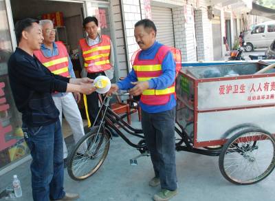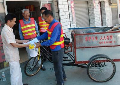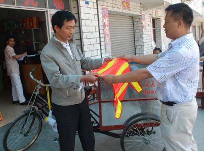 村里有了保洁员。 6月1日,建始县业州镇黑鱼泉村村支部书记闾远成、村主任许发炳正在为村庄保洁员胡自顺等人发放清洁收集车、保洁标志服装。正式开始实施村庄集镇保洁。在全镇已有一定规模的自然村集镇,定人、定责、定岗开展环卫清运、保洁工作,农村生活垃圾“农户清扫、专人清运、集中填埋”的方式,设置保洁员,对村庄道路、球场等公共活动场所实行定期保洁。 视界网签约摄影师 卢发荣 摄
