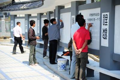 6月2日,笔者在十堰市竹山县深河乡中心学校看到,工人们正在对主题文化墙文字进行上色。 据了解,深河乡中心学校是潘口电站二期移民新建学校,目前已投资980多万元,是一所集幼儿园、小学和初中于一体的寄宿制学校。为引导全体学生树立真实、全面、积极的形象,形成积极向上的生活学习态度,该校投资20多万元建设20米的文化长廊、蘑菇型的读书厅和以“奋飞”不锈钢雕塑为中心的标志性文化景点,特色的校园文化建设,展示出移民学校新风尚。