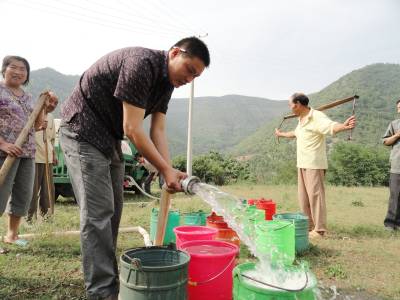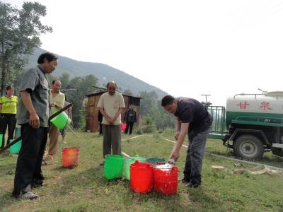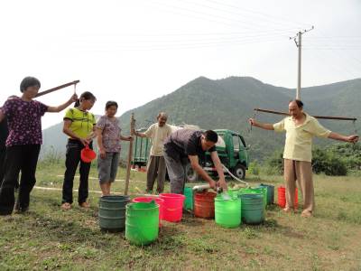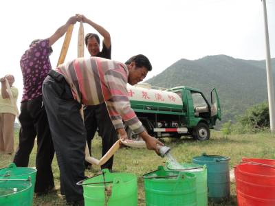 6月2日送水车正在郧县刘洞镇庙坪村为村民送生活用水。持续的干旱使该镇李家、庙坪、程营村村民水窖存水干涸,10平方公里内无一水源,农户生活用水靠该镇政府的送水车运送。(高超 张鑫/摄)
