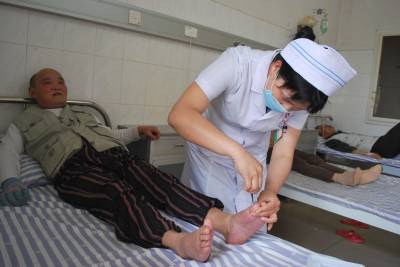 温馨服务的“白衣天使” 全省“百佳护士”、罗田县万密斋医院手室护士长周平平不管是在病房还是在手术室她把病人当亲人,用自己的温馨服务去温暖每一个病患者的心。在周平平的精神感动下,万密斋医院护士个个都能文明礼貌、热情为病患者服务;深受病患者的赞赏。这是6月3日上午周平平在为老年患者前脚趾甲。 本报视界网王志高 张朝珍摄 罗田县委宣传部 电话 13593691476