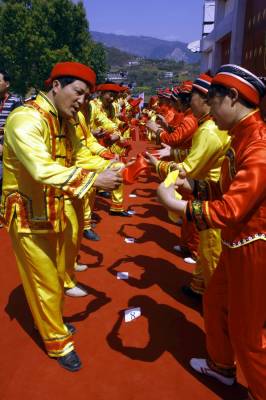Changyang Tujia ethnic farmer's performance "sa ye er he" is hailed as "east disco"."sa ye er he" is Tujia ethnic language,it;s a kind of dirge.Yichang Strengthen the protection and inheritance of the Intangible Cultural Heritage."sa ye er he" and other 17 projects were selected to list in national protection directory, Changyang southern ballad, "Changyang huguzi" and other 29 projects were selected to list in the protection directory of Hubei's government. (Wenzhenxiao)