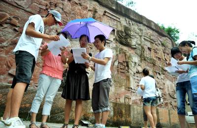 7月11日,来自武汉大学暑期学生社会实践小组的大学生们在恩施土司城向游客展开“关于鄂西生态文化旅游圈建设之恩施旅游资源开发利用现状的”问卷调查。据了解,该实践小组一行22人近日来到恩施进行“恩施土家族历史传统与文化遗产保存现状调查”的课题研究,旨在通过对档案资源的挖掘,展示土家族民族文化特色,保护珍贵的少数民族文化财富,促进民族团结,促进少数民族经济文化发展,让更多的人加入保护土家文化的行列之中。同时,他们还参观了恩施博物馆和档案馆,向专家咨询了更多关于土家文化传承和保护的问题。