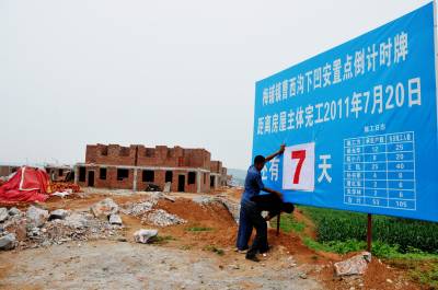 梅铺镇设置移民点建房倒记时牌
