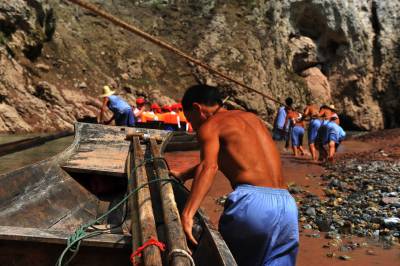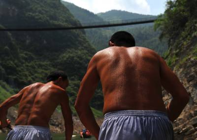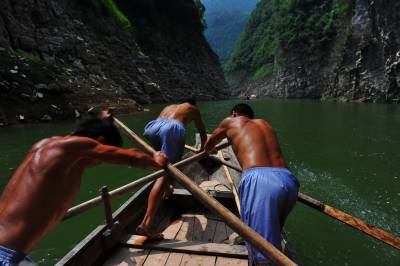 2010年8月的一天,湖北巴东县,炎炎烈日下,神农溪纤夫在奋力划船,不屈脊梁上的“瀑布汗”特别耀眼。