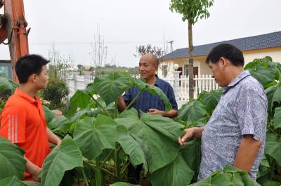 林权制度改革时,湖北省钟祥市长寿镇黄坡村853亩荒山,被外地冯老板租赁了50年的经营权。他开垦荒山,栽培进口泡桐9501树、红叶石兰树、桂花树等名贵树木。目睹快速成长的树苗,他(中)真开心! (视界网:李景发)