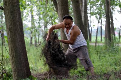 10年植树树成林 7月10日,彭武正在清理树丛中残渣。原湖北省当阳市草埠湖农场职工彭武,投资近百万卖断路旁、沟旁、堤防、港边植树造林经营权,近十年来,四旁植树加沮漳河防浪林折合面积500多亩,不仅为保护生态环境做出了贡献,实际还建成了一座绿色银行。文振效