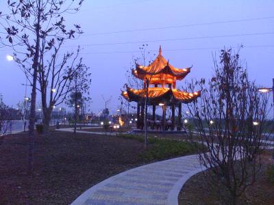 7月12日,人们在今年新建成的云梦县东城区“黄香大道”景观带看夜景,众多游人来此散步、跳舞、游玩!