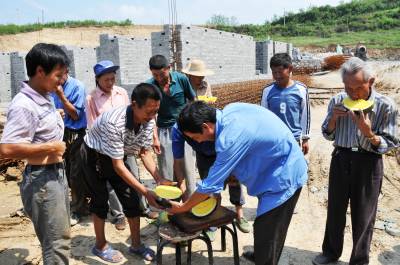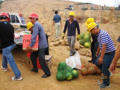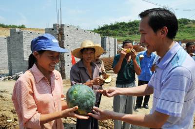连日来,十堰市郧县持续高温达36度以上,酷暑难耐,郧县79个移民内安建设居民点10000多民工还在抢晴天战雨天,汗流浃背战斗在施工现场。郧县县委、县政府、县移民指挥部组织全县35名县级领导,716个县直部门包村,2000多名干部包户到人,深入基层服务好28817名移民。截止7月12日全县县直各单位共组织60万元水果、绿豆、白糖、西瓜、春茶、猪肉、毛巾、正气水、矿泉水、绿茶、草帽、雨衣等防署解暑降温防雨等物资慰问79个一线移民安置点上的建设民工。全县79个移民内安建设居民点到处悬挂着“重质量,抢进度,促和谐”的标语,力争8月底完成主体工程和基础设施建设,12月底全面完成10个乡镇99个行政28817名移民的搬迁任务。